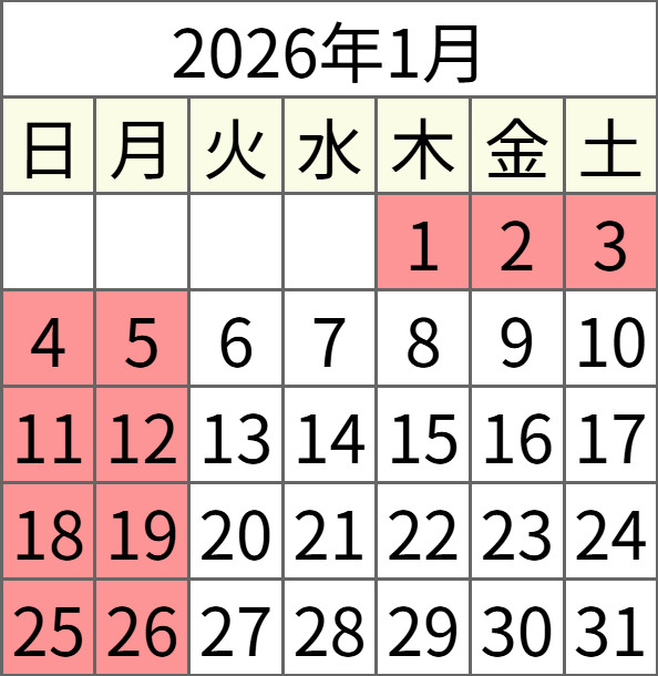 予約営業日(2営業日前までに予約をお願いいたします。)